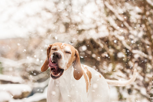 - This is such a beautiful image ... the soft almost monotone colors, the fun expression on this lovely dog's face, the light snowfall, and the perfect depth of field. Nicely captured and handled in post. ~ illona