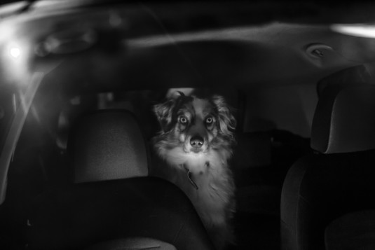 - What an intriguing image! The deep shadows and the low, almost mysterious, source of light, instantly draws the viewer in, and the dog's stare, of course, is nearly hypnotic. I do find the flare of light in the top left corner to be a little distracting, with the viewer's eye being drawn to it almost as much as the dog. I wonder if the overall image would be stronger if it were eliminated? Otherwise, i think this is a truly unique and intriguing image. Nicely done. ~ illona