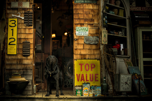 - The tones and variety of textures and shapes in this image keeps the viewer's eye roaming endlessly throughout, and looking for more adventure. The choice to use vignetting to put more light and emphasis on the dog as the subject allows the viewer to see him first amongst the many other competing elements. Nicely done. ~ illona