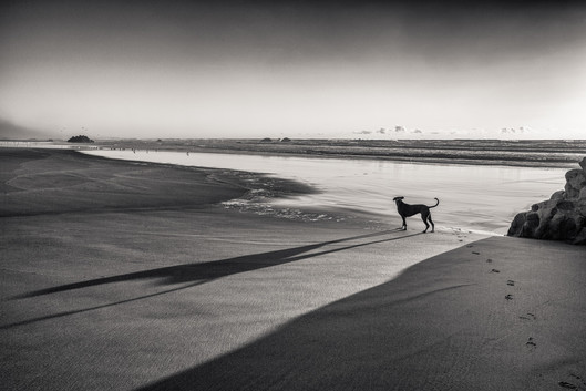 - This photograph was captured on Bandon Beach during a road trip along the Oregon Coast. My dog (and muse) Delilah, loves the ocean. We live in Los Angeles and the dog-friendly beaches here are few and far between, and also very crowded. I think she was just as taken aback by the open space and sheer beauty of Oregon as I was. I could have watched her chase the birds all day. As the sun began to set, her long shadow and the exquisite simplicity of the scene called my name. I shoot with a Canon 5D Mark III, this was shot at 24mm, f/8, 1/125 second and processed in Lightroom. To win first prize and also receive a Mark of Excellence is an incredible honor. I think Delilah and I will celebrate with a steak dinner. ;-) Thank you!