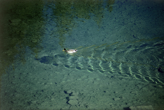 - A well observed refraction pattern created by this sunlit Mallard swimming in still, clear water.