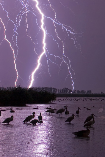 - Capturing birds backlit by lightning was a truly inspired move by this photographer. A measure of extreme creativity.