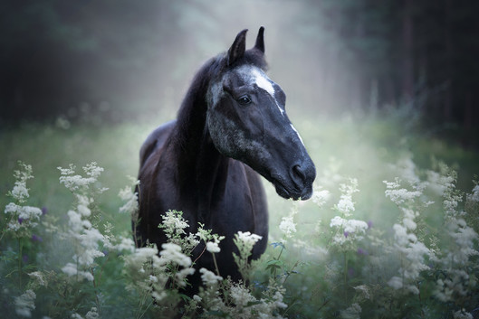 - This is such a lovely image ... the soft landscape, the great focus and detail on this horse's face, the surrounding flowers. Very well seen and captured. ~ illona