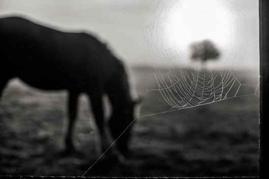 - This is such a strong image. In spite of the focus being on the spider's web, this is just as easily an image focused on the horse and the horse's surroundings. Creatively seen and managed in post. Well done. ~ illona