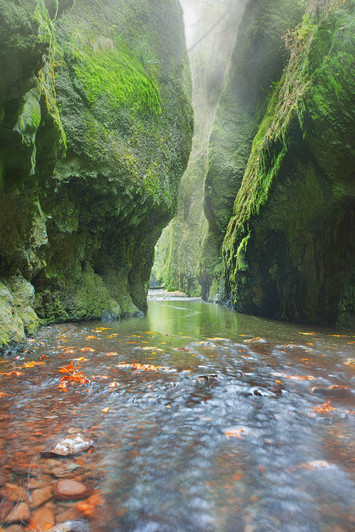 This is a fantastic canyon and a great location for photography. (That is once you get down there!). And this is a fairly sound effort, you have found a good angle to reduce most of the flare from the strong light through the gorge, you have applied some density to the lighter top of the gorge to darken that a little (but I wonder what tool you used, the result is pretty noticeable and black). Ideally this photo should have been taken with a neutral density grad filter to darken down its upper half, or for the more digitally minded amongst you, in two or three frames with different exposures. (If you use a steady tripod you can take several frames and then use them as layer masks in photoshop or for making an HDR image). You have strong lines leading into the image which is good and a nice slow shutter effect on the water but a stronger foreground subject would have made this much better, those stones on the left for example, would be great much closer. So a lower view with more attention on those lovely reddish stones and/or some leaves. The extra dimension makes a photograph more of a story.