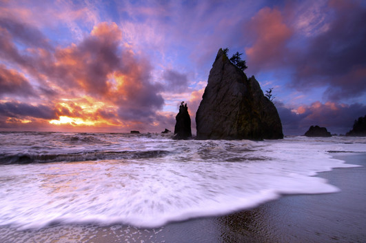 A very similar shot to entry n° 270 which also has a critique. We find the same dark problem, though this time on the rocks, and a similar raspberry flavoured sunset. We also have another fine composition and excellent choice of shutter speed to really bring life to the sea. The lost blacks are a real shame here too, as in n°270, this is otherwise a cracking shot.