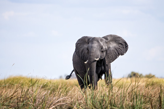 It is the low angle through the grasses which makes this work so well, the elephant is big and powerful against the sky, the grass brings a wild feel. The low African light is nice and cool bringing out all the details on her skin. I love the high tide mark from a nearby pool and the holes in her ear.