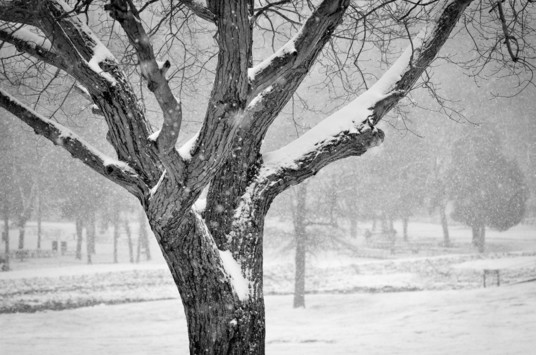 This is a beautiful photograph. The snowy weather has taken away any contrast making a lovely shot of white and greys. You have cleverly framed only part of this tree giving it a strong graphic presence with lots of detail in the shady areas thanks to the bad weather. Most folk would have walked past without seeing this composition. Well done.