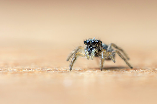 - Eyes on legs is the impression here! I love this cuddly spider shot and it thoroughly deserves a mention and practically clinched it. It is a beautiful macro photograph delivered with superb technique. The depth of field spans a mere few millimetres, creating a strong line of focus and a powerful horizontal dividing line (for spider to put his front feet on). Great creative composition and talent, keep at it.