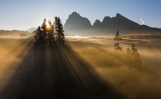 - Here is a beautiful mountain morning from a now familiar Dolomite silhouette, I suspect just after a lot of rain? With all that mist clinging to the ground… I like the soft sun behind the trees, which importantly also reduces flair, and the angle at which this shot has been taken. The details through the mist gradually appear as you gaze on. It is an amazing photograph. Beautiful landscape techniques and sound processing make this the winner of this competition. Big well done, won by a length!