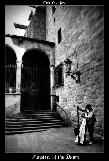 - This was taken in an alley in Barcelona Spain, my lady and I were sight seeing.We heard this beautiful music coming from this alley. We followed it till we saw this old gentleman playing in this old courtyard....it was beautiful and haunting at the same time.....
