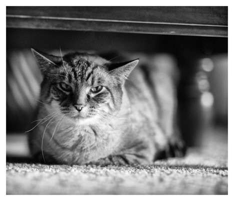 - My name is Lori Lynn, I am from Iowa. The cat in this photo is Shakesphere my darling pet of 14 years. I had to get on the floor and hang out in his world for a while to get this shot. This photo was taken with a 85mm f/1.8 with natural light. Thank you!