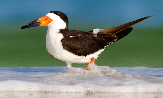 - An intimate portrait of a Black Skimmer in its natural environment, the fine spray of the breaking surf adding to the sense of 'being there'.
