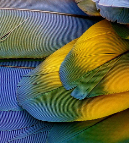 - Further evidence of the accessibility of great photographic subjects as this macaw's feathers are magnified to bring out a fascinating combination of color, texture, shape and line. The imperfections in the regular patterns draw the eye to all parts of the image.