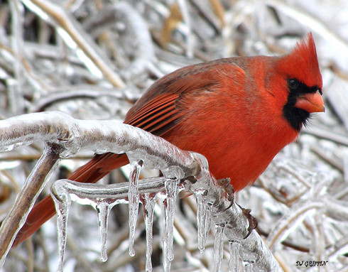 - It's hard not to empathize with this Red Cardinal's plight as it puffs up to keep warm amongst the ice-encrusted vegetation.