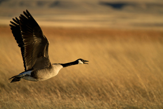 - A real wilderness scene that features a perfectly-posed Canada Goose in a setting that, although defocused, provides an evocative sense of place and time.