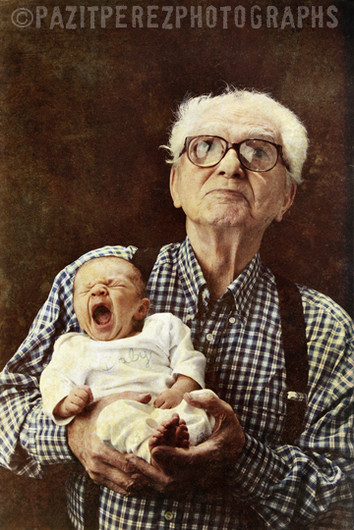 - Different sides of the life-circle presented almost as a poster - a baby and an old man. Beautiful, how these big and loving hands cradle the new life.