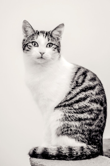 - this image is true art. the subtle tones -- almost white-on-white -- the starkness and clean lines make this image work well large or small. the curve of the tail around the stark white lines of the wall on which he is perched, instantly draws you in. absolutely wonderfully done and a truly memorable image. ~ illona