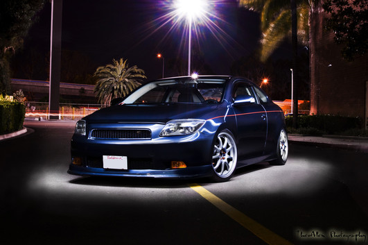 - Ted Litke San Diego, Ca Nikon D5000 minimal post processing in photoshop cs6, curves for contrast, very minor burning. This Scion Tc belonged to my friend and we shot this behind a mall pretty late at night w minimal traffic in the area. I was using a 160 LED dimmable video camera light for the lighting.