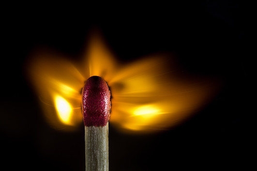 - Light set up: 2 strobes on the both side at 1/64 with snoot to light up the match only. For the shooting process: Right hand: a burning match that I brought to the subject from the back side Left hand: the dslr trigger to shoot as soon as the "pschsss" of the subject came. After approx 15 trials, I got this shot which I was almost perfect (even on the position on the 1/3 that I just corrected lightly) Some more Hight speed picture to be seen under the Flickr gallery