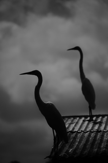 - Elizabeth Yuerklier DiRosa Florida-Wildlife Photographer-The challange of photographing egrets is keeping them from being over exposed in direct sunlight. But, in this case they became an eclisp-- against the dimly lit-overcast sky. Thus, creating a moody image on a hot tin roof.