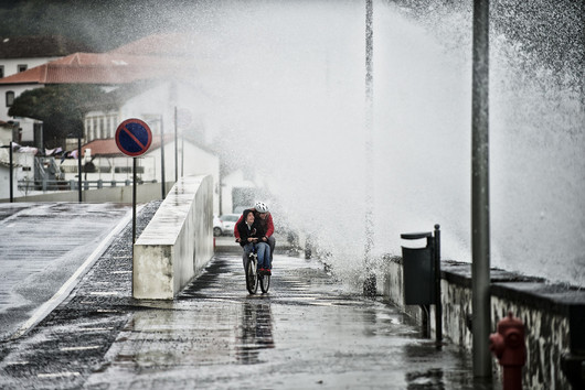 - "Sea kiss" was the title I gave to this picture taken in Praia da Vitória, Terceira Island, Azores. Although not very common sea climb this wall and get on the road, especially in spring, happened on this day. This moment is the proof that it is worth having the camera always ready. I could not believe when I noticed those guys cycling through that area. This photo was taken with a Nikon D4. Thank you for such a distinction, Rui Caria.