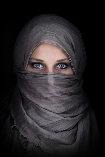 - This picture was made during a photo Shooting with a female soccer team in my studio. One of the girls has worn the grey scarf around her neck. I saw her impressive eyes and I pleased her to turn the scarf around like a muslim woman. I put a Strip light on the left and the right to get these 'cat eyes'.