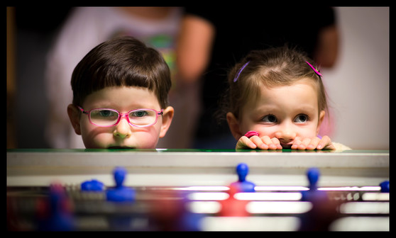 - I spent the new year's eve in a cottage in the Alps, surrounded by my friends and their sons. I took the chance for some extraordinary natural light portraits, catching them busy at having fun all around the clock. In this very shot, they're peeking out of a table soccer, attending at a raging game. I loved its simmetry, and the strange light coming from fluorescent fixtures. Nikon D600, 85mm/1.8 wide open. -Roberto D'Antoni