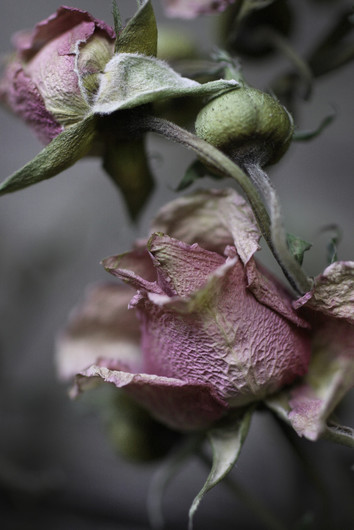My name is Cassandra Pfaff, and I'm from the suburbs of Pittsburgh, PA. I am a graphic designer, product photographer and yoga instructor. The flowers were from my mother's funeral in January - the arrangement was beautiful and kept becoming more compelling as the flowers dried, this was taken about 6 months after I received them. The flowers never became fragile as they dried, instead becoming soft and fabric-like, which was my goal here to capture.