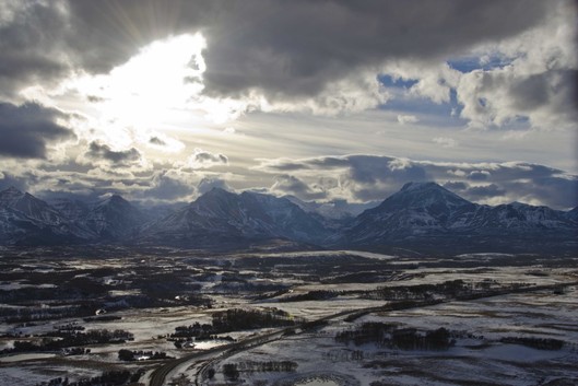 - I work as an oil pipeline patrol pilot in Alberta, Canada. The scene is west of Pincher Creek at the Waterton Metering station, looking southwest to the Rocky Mountains. I had just completed patrolling a line. While turning to the right I saw this scene under the wing. The photo was taken though a Nikon 18-200mm VR-DX lens mounting a D7000 camera body. The photo was given minimal lighting and sharpening adjustments in Photoshop Camera Raw. It is nice the photo is enjoyed by people who see it.
