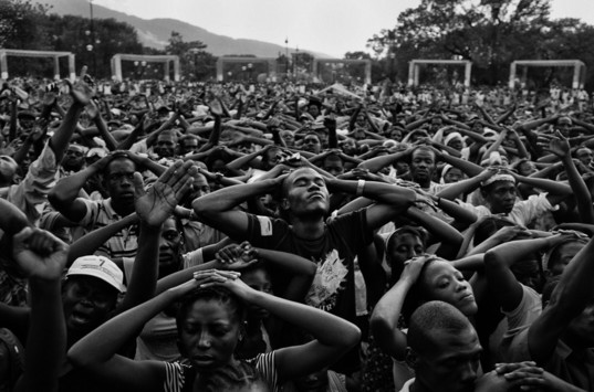 - This unity of closed eyes and arms reflecting the light might be a music festival, group yoga or a religious ceremony. Mesmerizing to look at.