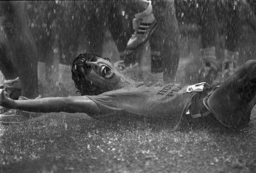 - Thank you for the recognition. This was shot at the end of an annual 10K race in Atlanta, Georgia. Always on July 4th and always hot. The cool down water spray at the end is popular for runners as well as photographers. This was shot with Tri-X and probably a 180mm lens on a Nikon.