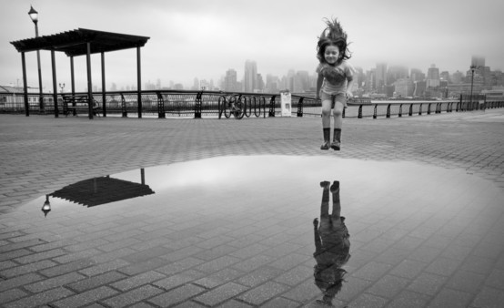 - Thank you so much for this Mark of Excellence! My smile is wider than my face:-) My name is Rob Jenkins, originally from the UK, I now live in Hoboken, New Jersey, across the Hudson river from New York City. This image was taken with a Nikon D80, on the same Hoboken waterfront where Marlon Brando once trod, on a grey & rainy day. Originally shot in colour, I then applied a small amount of post processing in Photoshop, including the B&W conversion. My daughter jumped into the puddle so many times, that by the time I had the shot, there was no water left to jump into!!