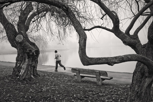 - Thank you for awarding me this Mark of Excellence! It is indeed a thrill to receive this accolade along with so many other great photographs. My name is Doug Frost and I live in the San Francisco Bay Area. Photography is my avocation and my passion and I shoot whenever I can. I shot this by the lagoon on the grounds of the Marin County Civic Center in Terra Linda early one morning. I noticed a couple of interesting trees by the lagoon footpath. Some joggers were running along it for their morning exercise, so I positioned myself strategically between the trees and waited for them to pass by. This is one of my two favorite shots from that morning. I took it with a Sony A850 with a Zeiss 24-75mm lens at ISO 500, f/5.0 and 1/320 sec. The raw file was minimally processed in Photoshop CS5.