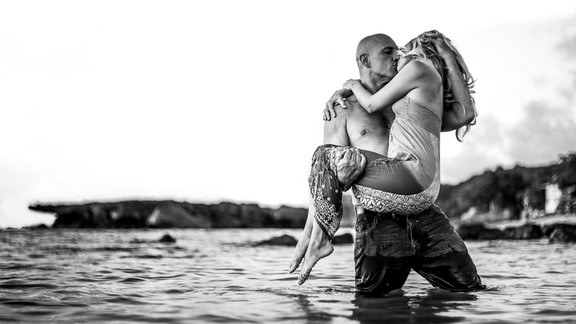 - The little mermaid picked up by a passionate man who believe in love at first sight? The clean tones and composition, the intensity in the kiss, as well as the fact that the legs have a shape that make it look like a mermaid makes this photo. For those who know them, we guess, it's a great shot of a moment of passion.</br> Runner up prize winner.