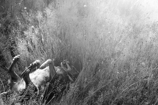 - this is SO dog ... a good roll in the grass and what we have to assume is the golden light. although it works in black and white, i have to imagine that it would work quite successfully in color as well, in fact, maybe more so, since this this is no doubt some lovely soft light. great framing and post work. nicely done. ~ illona