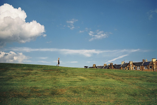 - This image was shot last July in Edinburgh at the edge of Holyrood Park. When I arrived at that location where landscape gives way to cityscape, the shot and framing seemed obvious, but I was really lucky to have, just at that same time, this man and his dog, and this cloud following them to the city. Leica MP, Summicron 35mm with circular polarizing filter, Kodak Ektar 100 film.