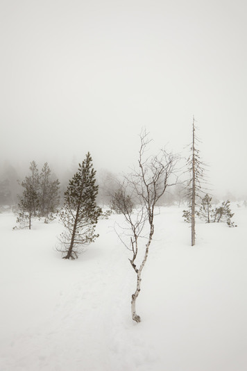 - Well had we not have had such an outstanding winning photo this would have been this round’s best. I love the beautiful colourless tones from this snowy and foggy scene. You have given each tree plenty space, enhancing their differing shapes and characters; the silver birch is beautiful in the foreground, its straggly form glorified by the pine and the larch behind. The exposure is perfect, the tracks in the snow slowly creeping out of the white. It is a lovely eye-pleasing minimalist composition which would make a fabulous enlargement to hang on the wall. Great photo, well done!