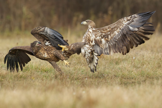 - This photo was shot in Poland, some 2 hours west of Warshaw, where there is a large colony of white-tailed eagles. These two young eagles were fiercly fighting for their prey. My name is Kai Rösler, I am a nature photographer from Switzerland. I used a Canon 1Dx with a Canon 4/500mm telephoto lens, from a hide. Thank you for selecting my shot for a mark of excellence!