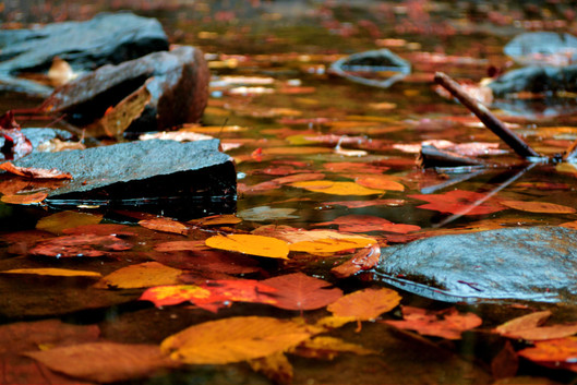 - This photo was taken at the bottom of Cloudland Canyon. Down 618 stairs await two beautiful waterfalls, but I chose instead, to focus on the warm colors of the fall leaves against the cool tones of the rocks on the bank . Taken with a Nikon D3100, with little post editing. Thanks for the votes!! -Korie