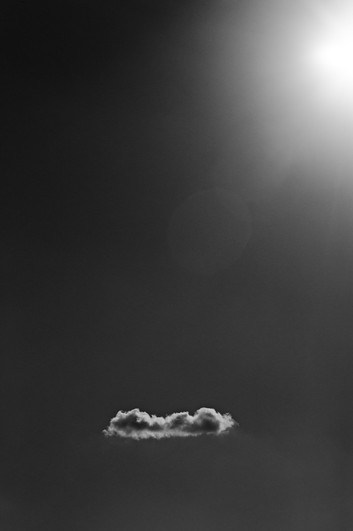 - One cloud illuminated from above by the sun - like an actor appearing on stage. Nothing else. Perfect composition. Black & White harmony. A picture one can look at forever.