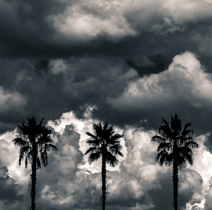 - A strong graphical interpretation by this photographer. The square format is wisely chosen. The three palm trees form an identity and symbiosis with the clouds in the background, one cannot be without the other. The details and the light lies within the background, the palm trees are mere shadows. A situation as before a heavy storm, or shortly after? The weather dominating the flora on earth - represented by clouds.