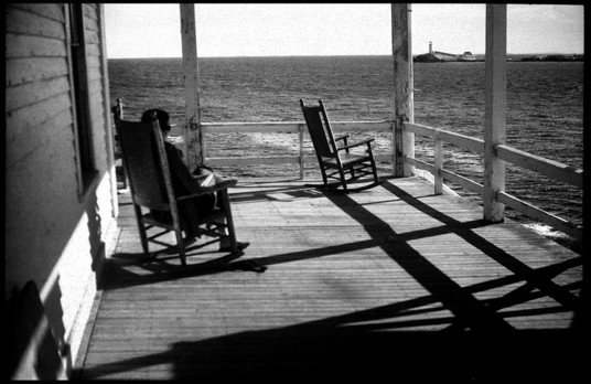 - Carol-Lynn Rössel, Winthrop, Maine, USA. Thank you! I am absolutely delighted to have my photograph (taken on the porch on the Oceanic Hotel on Star Island, New Hampshire), chosen in the competition. Star Island is a half-mile of granite (an old mountain top) ten miles off the Atlantic Coast, one of the Isles of Shoals. I took the photo on Tri-X with my Zorkii 4K and its Industar 50 lens. I love old Russian lenses and the timeless quality they impart. Working with a rangefinder is a new delight for me. I've recently purchased a new/old Leica 3M, onto which, with an adaptor, the lenses, fortunately, fit. My photographs are hybrids. I scan negatives into my Mac, work on them in Photoshop and print digitally. This photo needed little post-processing. Thank you again for this honor. Wow!