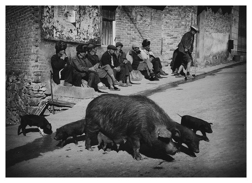 - Parallel life in the same street. We found ourselves kept looking at this image, at some point even counting the men and the pigs. Sometimes photos don't have to be understood, just looked at.