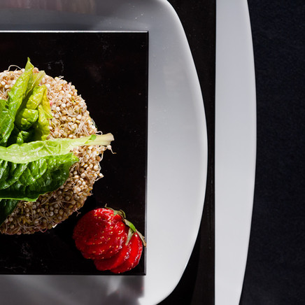 - Nice original on the plate shot. You have taken your subject a little further, creating shapes with the knife and plate, the shapes and textures of the food nicely enhanced by the horizontal lighting. Nice shot.