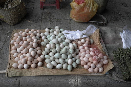 - This looks like a scene from a covered Asian market. Beautiful arrangement of different coloured eggs and a lovely natural light. Well spotted and composed, you have kept this nicely simple.