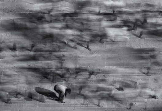 - The feet almost flutter like birds flying here in this beautiful lyrical abstraction of activity in an urban environment. A real sense of motion and life is conveyed to the viewer in a lovely creative way.