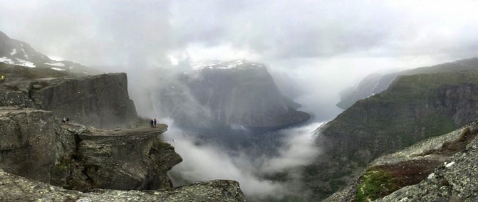 - Thanks for choosing my photo! My name is Hakan and I live in Sweden. The photo was taken with my Iphone 5S and the panoramic app "360". This summer we went from Sweden to Norway for some hiking. This trip was about 5 hours one-way. But the scenes was worth it. The cliff is called "Trolltunga" (Troll's tongue), and sticks out in the air with a 700 meters drop below.
