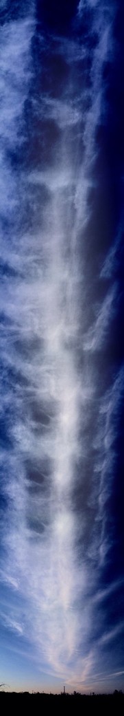 - My name is Heather Sprague, and my photos come under the brand Fey LittleWing Photography. I took this particular image with my iPhone 4S, in my yard, in the high desert in California. You don't see skies anywhere else in the world, like you do in the desert, and I constantly marvel at the shapes and colors when I look up at the sky. I did run this image through two apps, but I honestly cannot tell you which ones. I make a point of this, because my process is to work intuitively with an image until I have an emotional response, rather than to memorize applications, insuring that all my photos come out looking the same. I stopped with this image when I felt not only the sensation of being pulled across the sky, but also of being pulled up into space. I hope that sensation translates to the viewer.