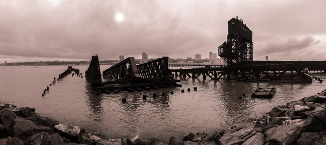 - Very dramatic and sombre with muted tones, rough textures and the architectural elements of the iron structures. The sun almost coming through the clouds is really a lovely touch.